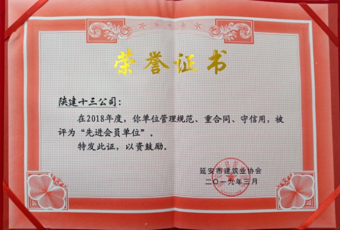 2018年度延安市建設工程質(zhì)量安全生產(chǎn)先進集體