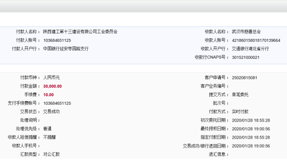 面對(duì)新型冠狀病毒肺炎疫情防控的嚴(yán)峻形勢(shì),公司第一時(shí)間發(fā)出了“愛(ài)心捐款倡議書(shū)”,立即得到了全體干部職工的積極響應(yīng)。十三建公司全體黨員以及廣大職工發(fā)揮模范帶頭作用,集十三建人力量,匯廣大職工愛(ài)心,在短短一天時(shí)間內(nèi),自發(fā)捐款合計(jì)三萬(wàn)元,最終通過(guò)公司統(tǒng)一轉(zhuǎn)往武漢市慈善總會(huì),助力打贏疫情防控阻擊戰(zhàn),用實(shí)際行動(dòng)支援湖北,向偉大祖國(guó)表白!