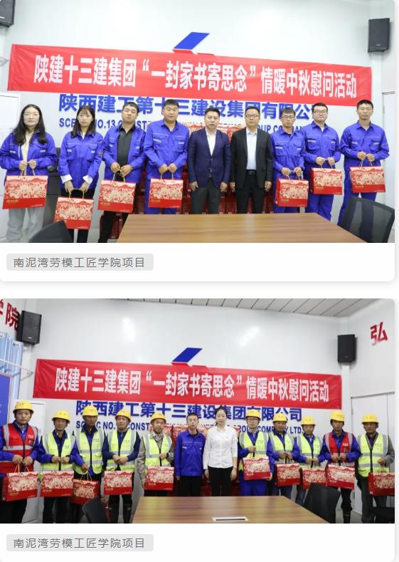 在中秋佳節(jié)來臨之際,9月16日至17日,陜建十三建集團黨委、工會分別赴金鴻·行知坊項目、伴山樾谷·芳菲里項目、南泥灣勞模工匠學院項目施工一線慰問項目管理人員和廣大農(nóng)民工朋友,并為他們送去了月餅及節(jié)日的祝福。