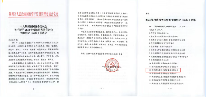 近日,中共陜西省國資委委員會印發(fā)關于授予2024年度陜西省國有企業(yè)文明單位(標兵)的決定,集團獲評“陜西省國資委文明單位標兵”。